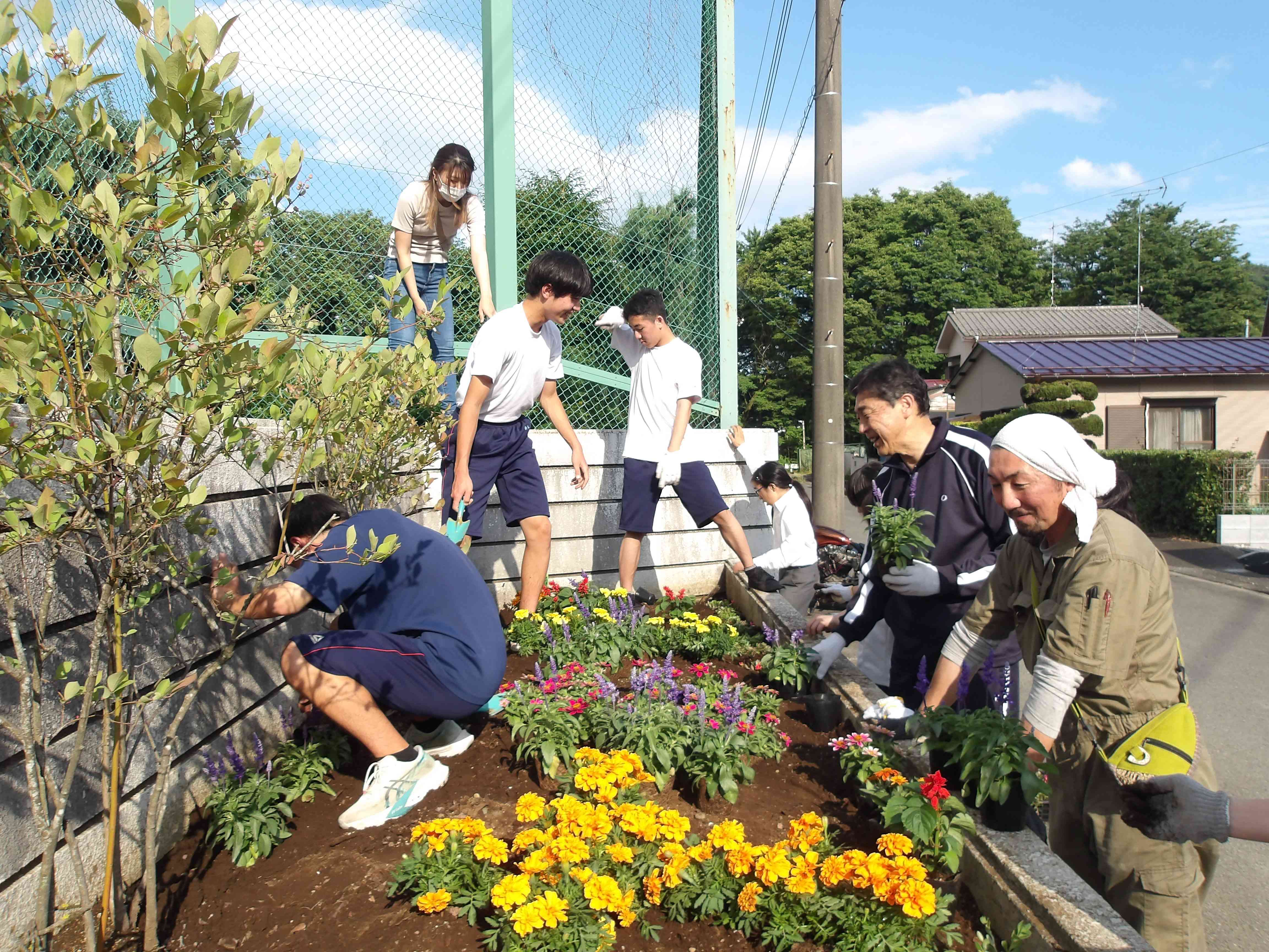 PTA生涯学習委員会主催で、秋の花植えが行われました。生徒のみなさんと保護者の方々のボランティア、およそ30名ほど集まって頂きました。